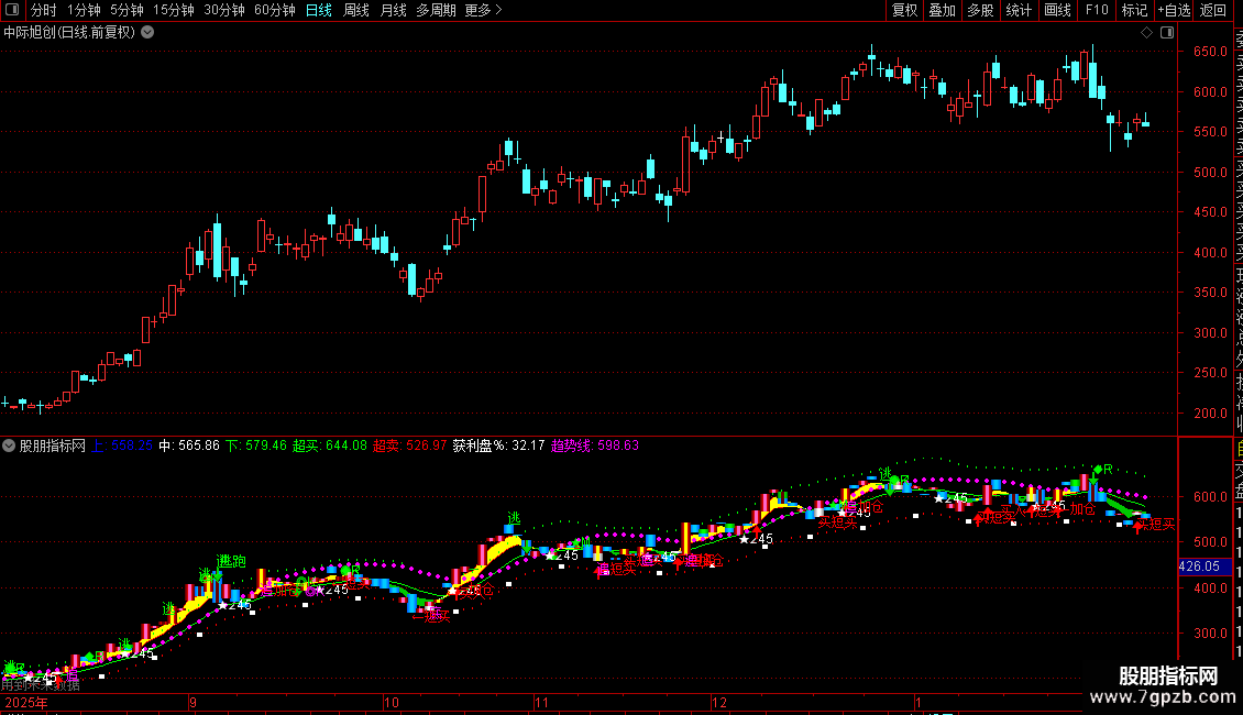 * 不同颜色的K线标识和均线加粗功能有助于直观感受短期趋势的强弱变化。