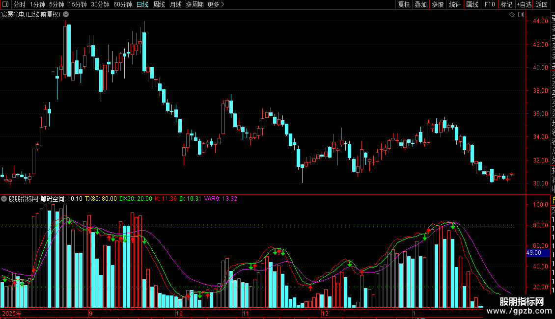 利用K、D金叉/死叉及其与长周期线(VAR9等) 的相对位置,判断短期动能与中长期趋势的共振点。