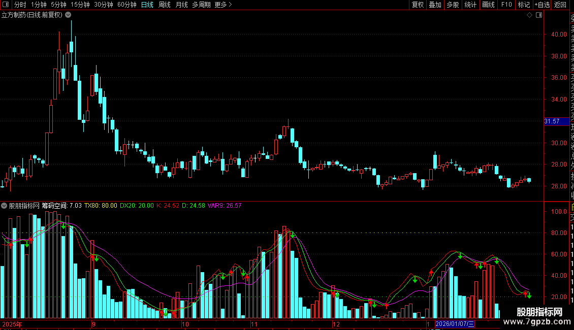 VAR6:K线与VAR5的均值,用于平衡短长周期。