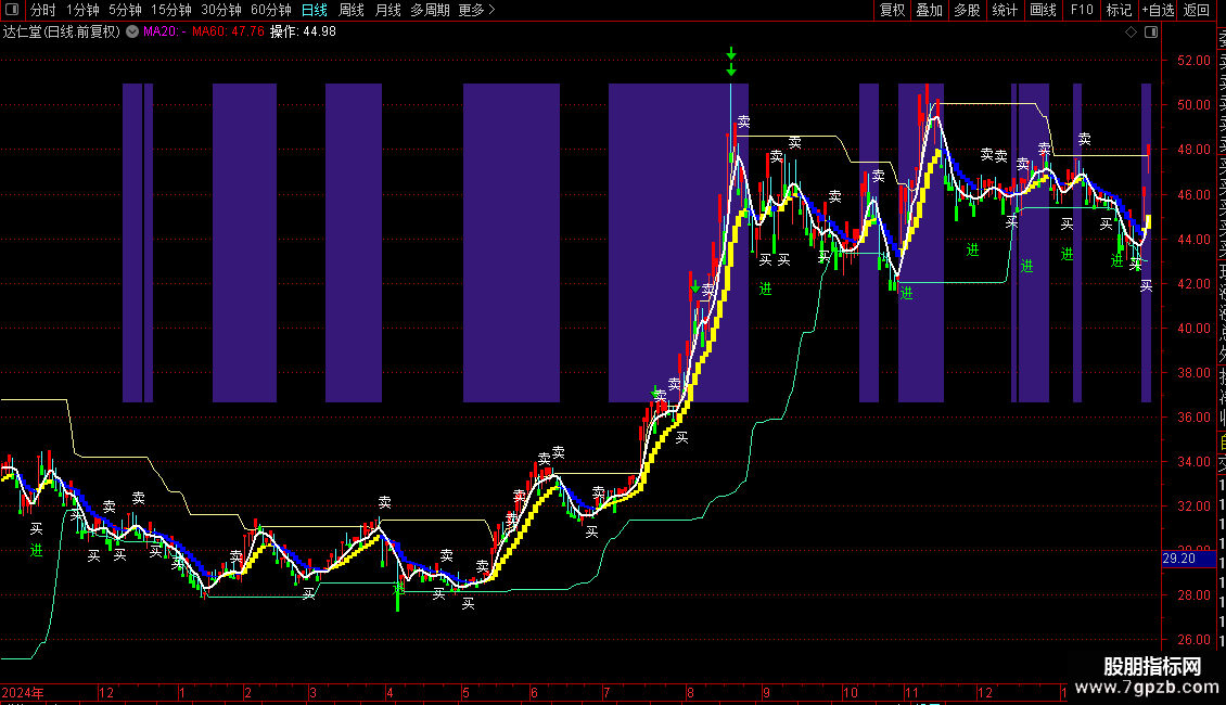界与指导线:由4、6、12、24日EMA共同计算得出的两条快慢线,用于判断短期波动。
