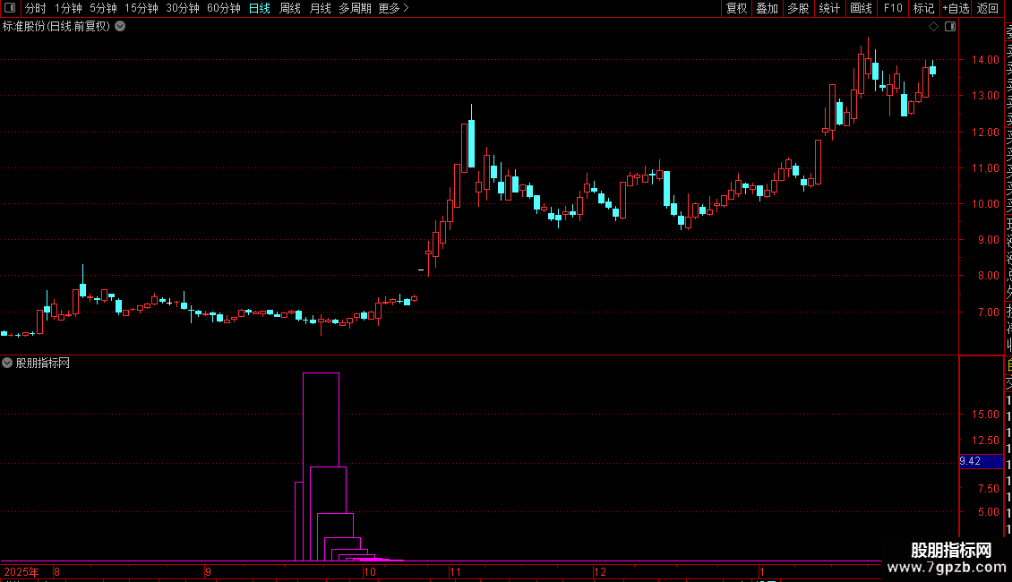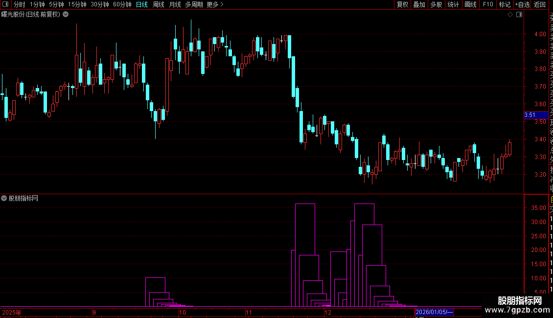 1. 指标为副图指标,显示为彩色柱状线。