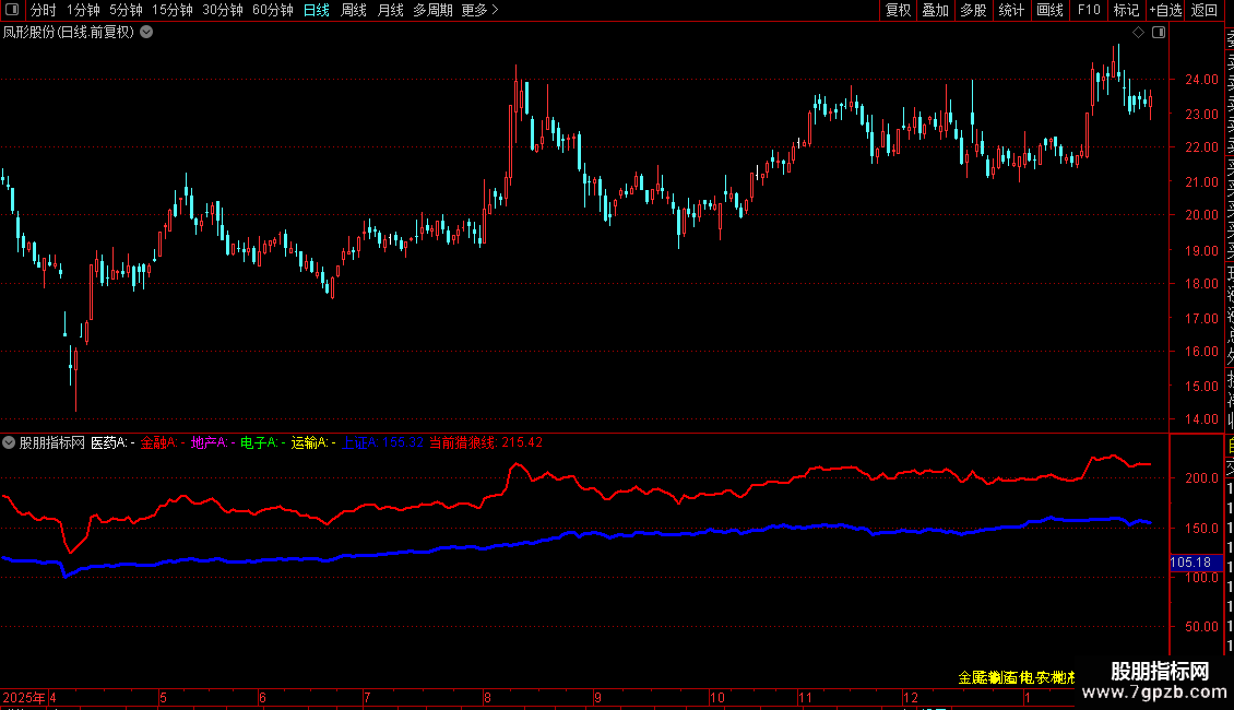 指标是一个多行业指数与个股走势的对比分析工具,主要用于观察个股走势相对于不同行业板块指数的强弱。