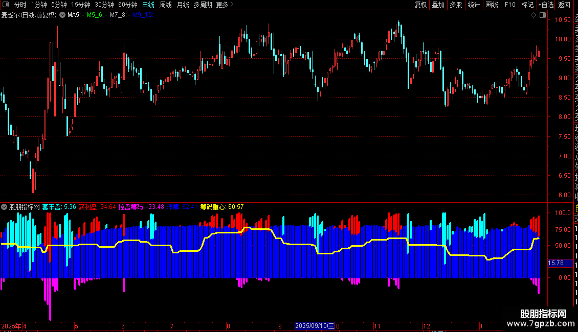 - 可结合筹码重心线的趋势(向上或向下)辅助判断中长期方向。