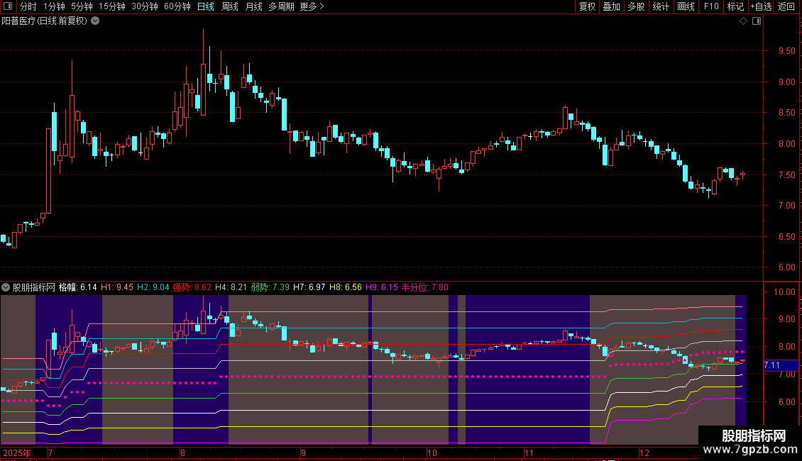 半分位:高-(高-低)*0.55,POINTDOT,LINETHICK4,COLOR9900FF;