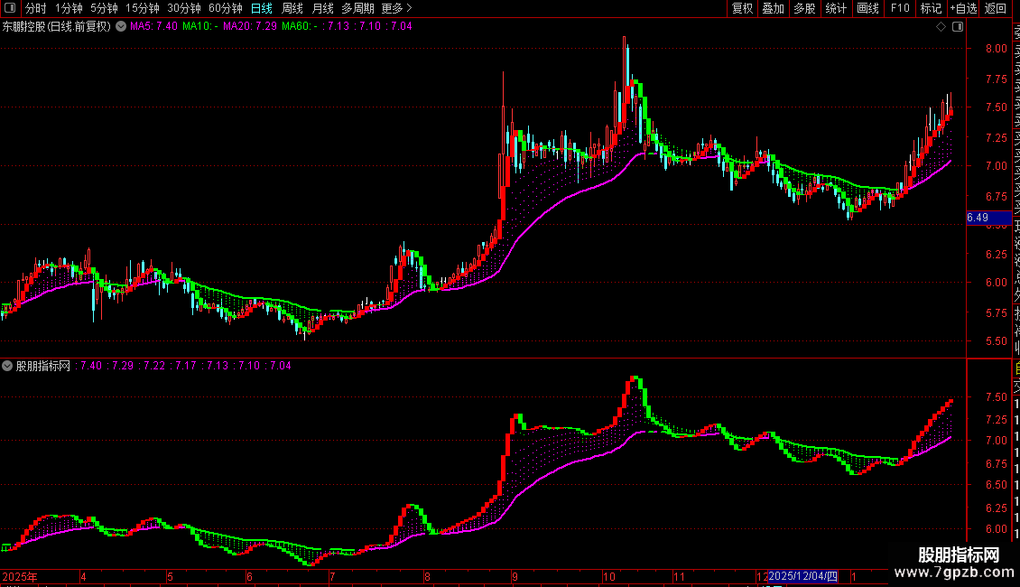 指标是一个多周期均线系统与量价分析结合的主图指标,并附带一个选股条件。