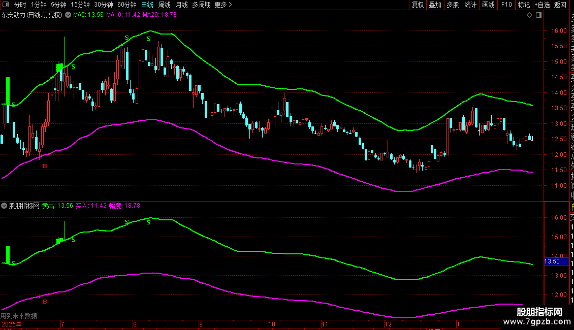 4. 幅度:计算`(卖出线 - 买入线) / 买入线 100`,得到两线之间的百分比宽度,该值不直接显示在图上。