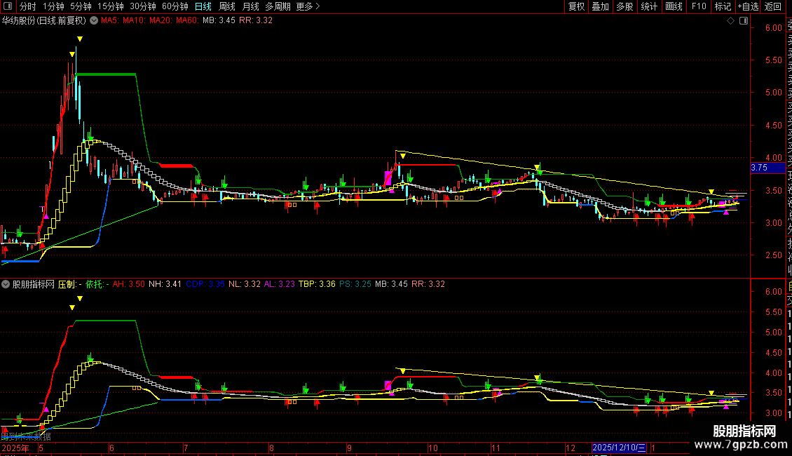 压制:DRAWLINE(C=HHV(C,60),HHV(H,3),C=HHV(C,30) AND C<HHV(C,45),HHV(HIGH,1),P),COLORYELLOW;