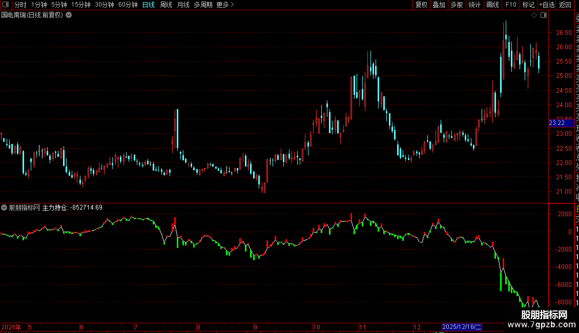 当满足条件DT<0时,在主力持仓+DT和主力持仓位置之间画柱状线,宽度为1,0不为0则画空心柱.,COLOR00FF00