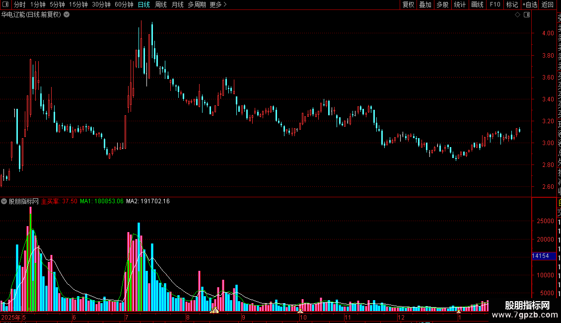 MA2:EXPMEMA(VOL,10),COLORWHITE,LINETHICK1;