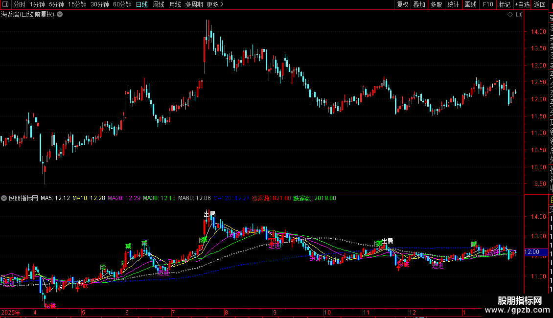 DRAWTEXT(CROSS(动能趋势线,87.5),HIGH*1.02,'出局'),COLORWHITE;