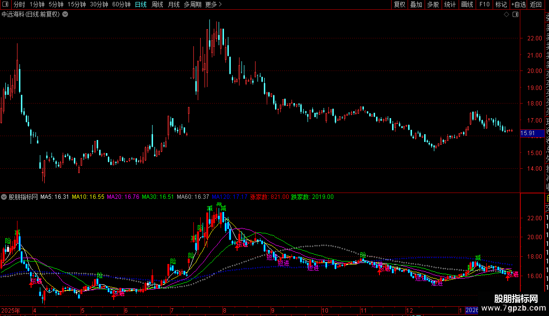 DRAWTEXT(CROSS(J,REF(J+0.01,1)) AND X AND J<20,LOW,'短进'),COLORFF00FF;