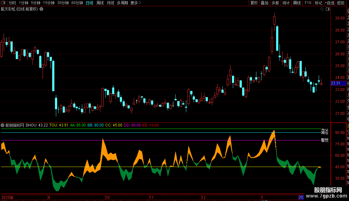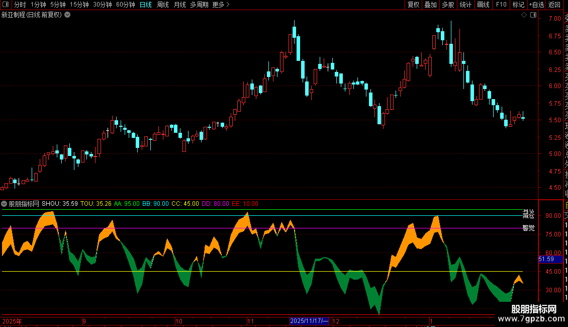 SHOU:SMA(MAX(CLOSE-SHI,0),N1,1)/SMA(ABS(CLOSE-SHI),N1,1)*100;