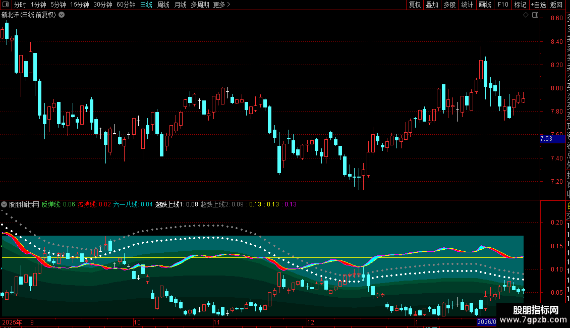 反弹线:(基本超跌线*(0.618+1)/2+基本超跌线)/2,POINTDOT,LINETHICK4,COLORLIGREEN;