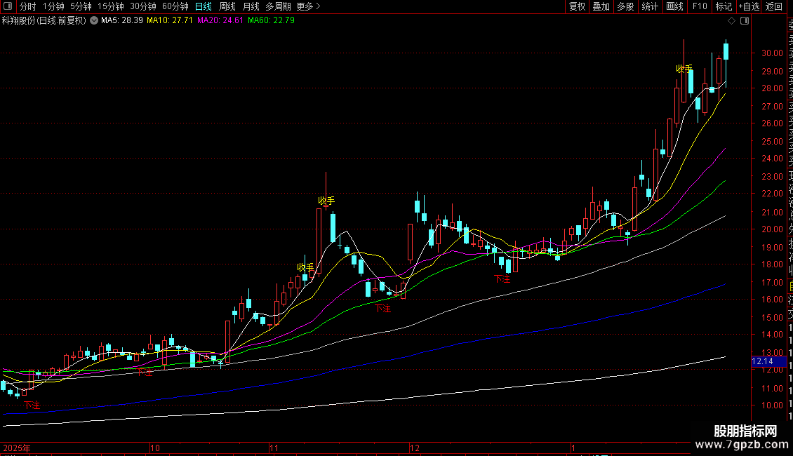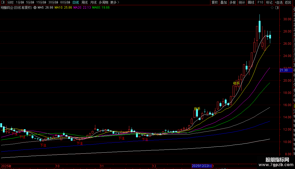 DRAWTEXT(CROSS(J,REF(J+0.01,1)) AND X AND J<20,LOW*0.95,'下注'),COLORRED;