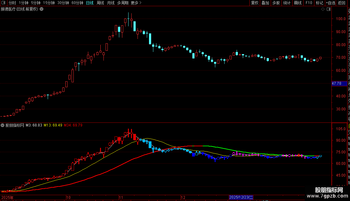 STICKLINE(M3>=M13 AND M34>=REF(M34,1) AND C>=O ,O ,C ,3 ,1 ),COLOR0000DD;
