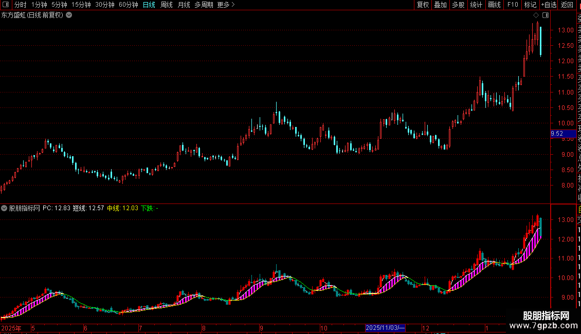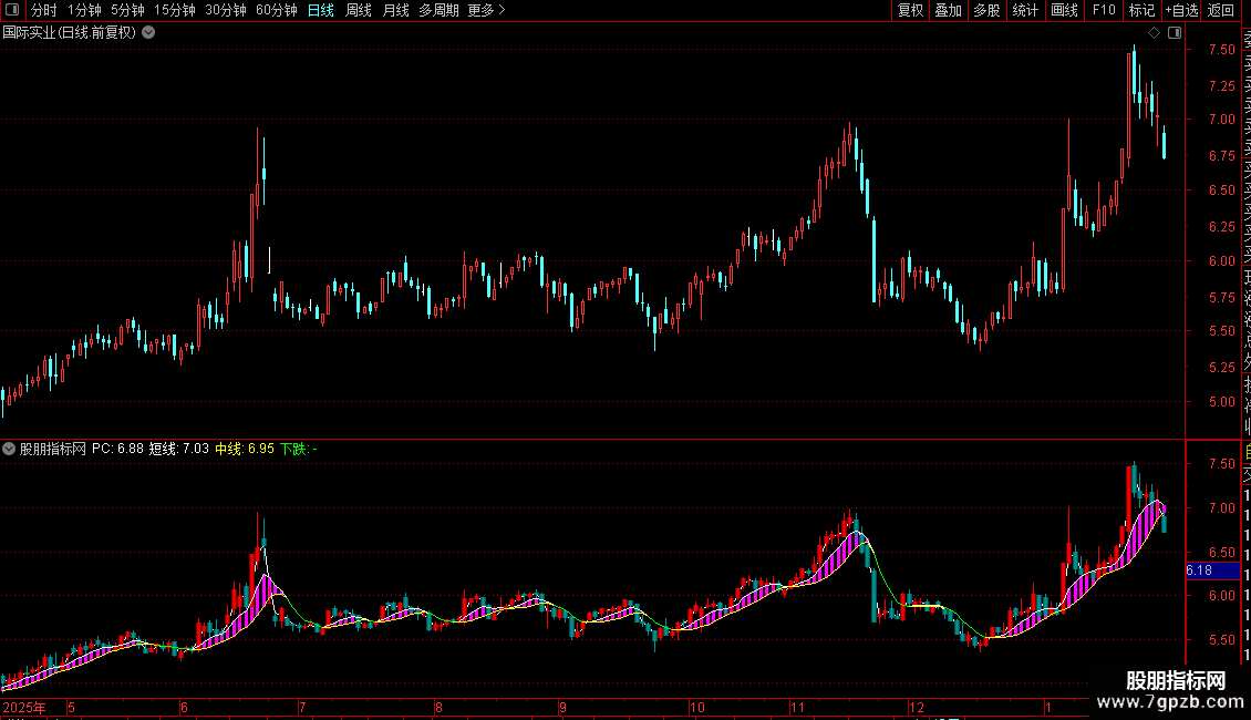 下跌:IF(VAR1=VAR6,VAR6,DRAWNULL),COLORGREEN;