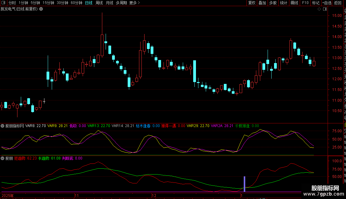枯木逢春:IF(0-(-1)*VARF AND VAR10 AND CROSS(VAR13,VAR14) AND VAR13<=25,50,0)COLORFF9900;