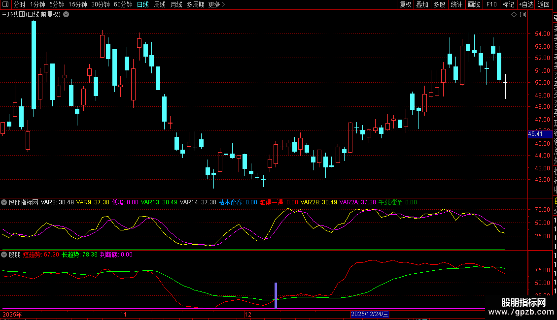 难得一遇:IF(0-(-1)*VAR1A AND VAR1B AND CROSS(VAR1E,VAR1F) AND VAR1E<=25,40,0)COLORRED;