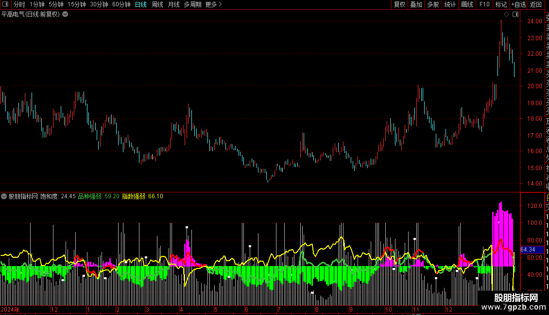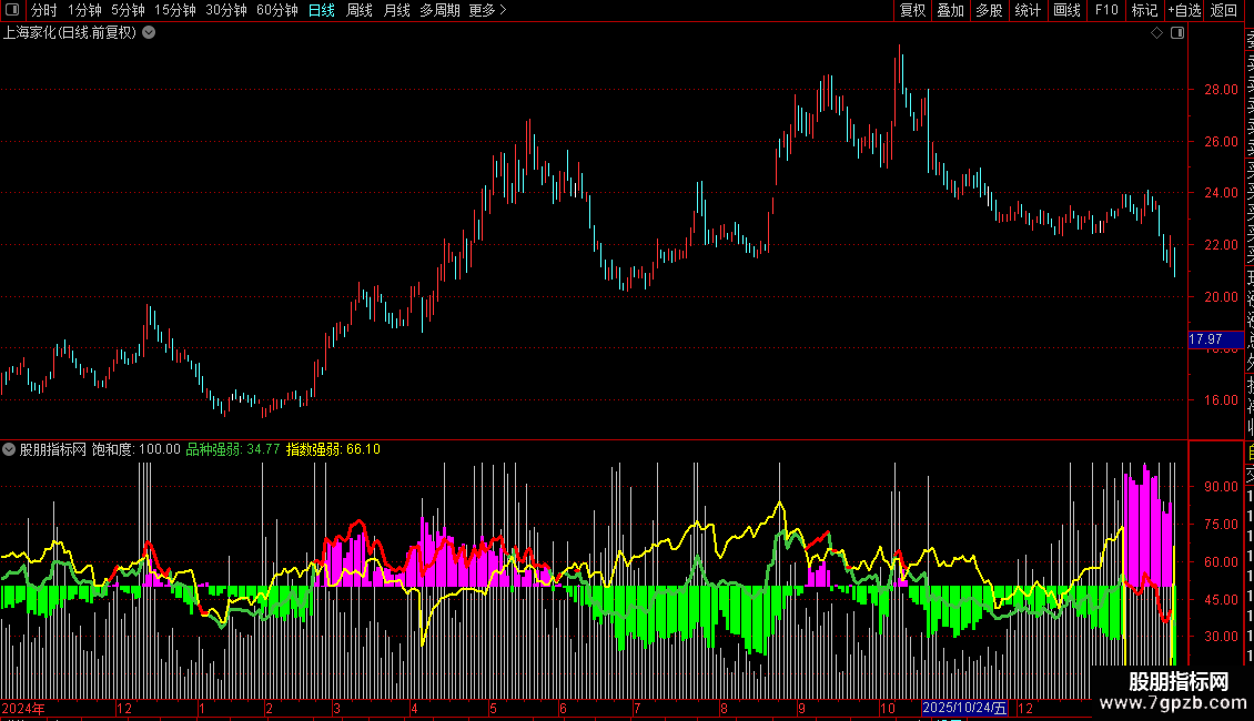 饱和度:IF(SAT>1,1,SAT)*100,COLORLIGRAY,LINETHICK1,STICK;