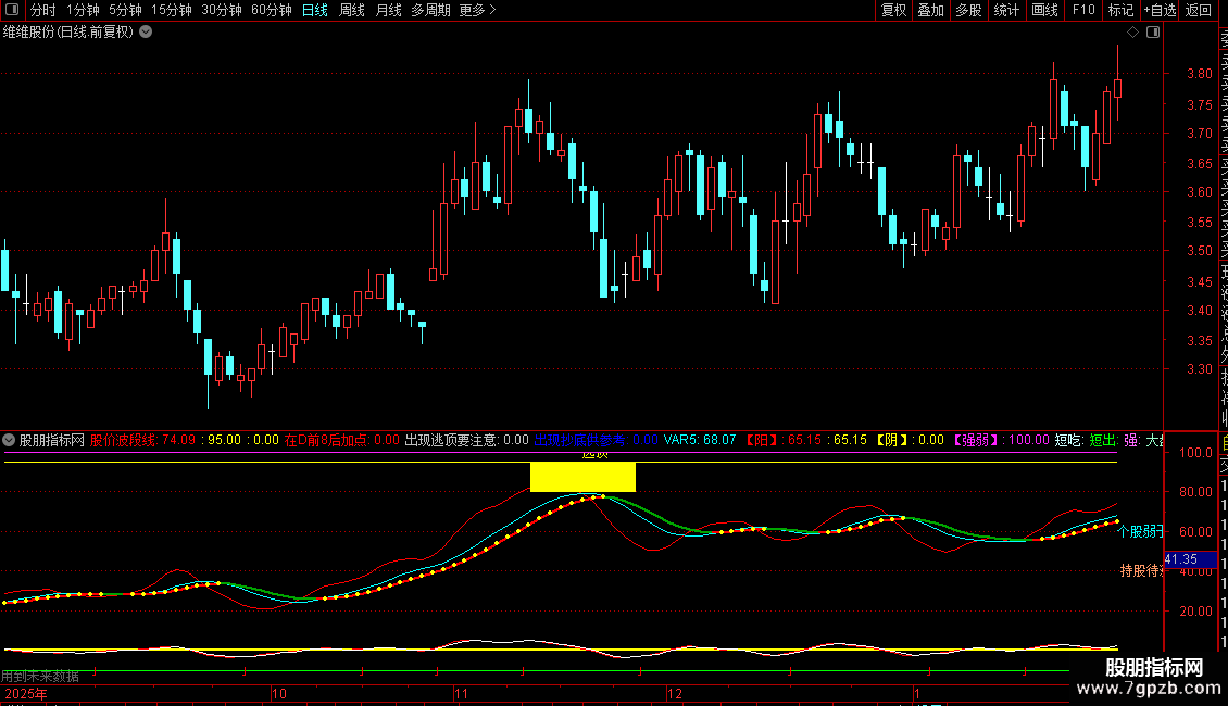 短吃:DRAWTEXT(ISLASTBAR=1 AND CROSS(【强弱】,Y2),80,'短期吃货!'),COLORFFFFCC;