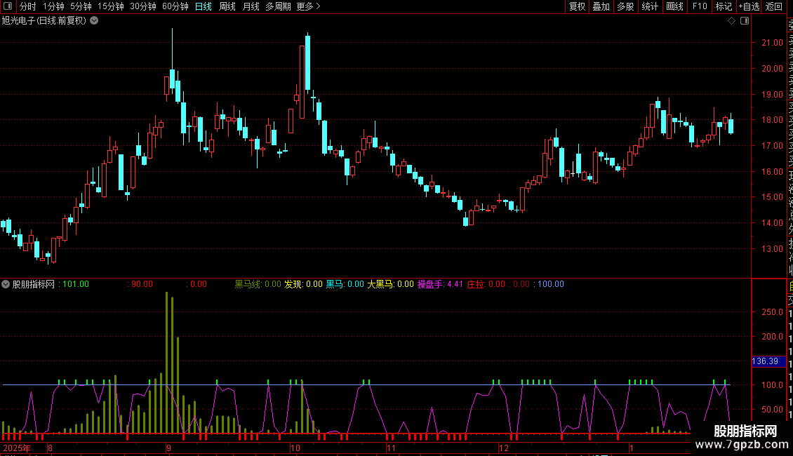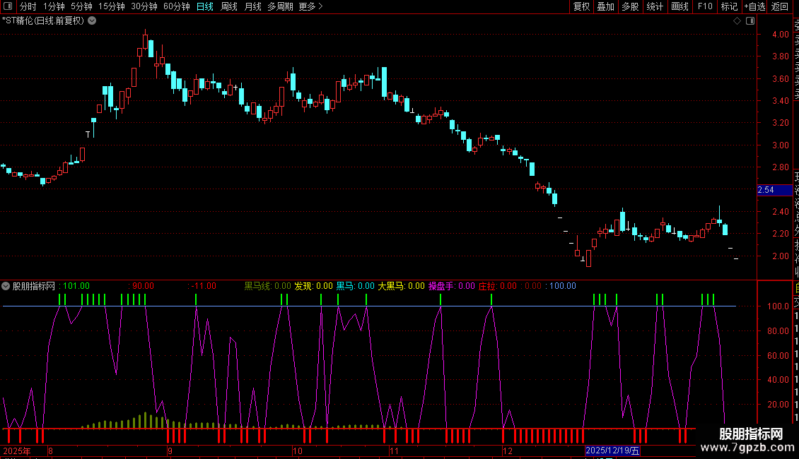 {DRAWTEXT(发现>0,25,'短线黑马2.5%')COLORCC99FF;