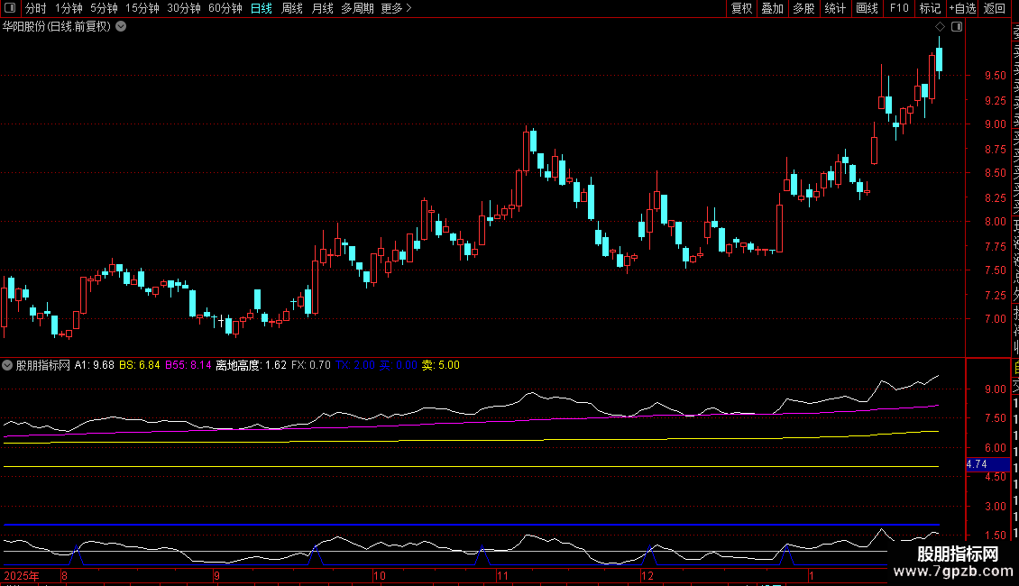 离地高度:EMA((C-LLV(L,15))*10/LLV(L,15),2)COLORWHITE;