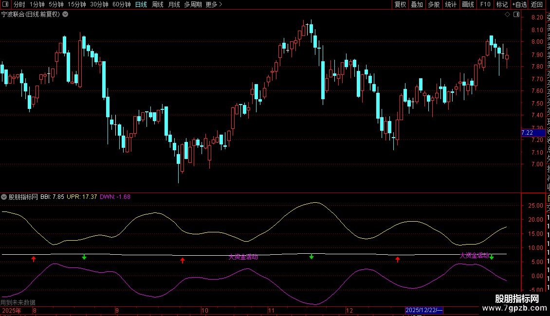 DRAWTEXT(VAR11 AND COUNT(VAR11,30)=1,LOW*0.95,'大资金活动'),LINETHICK1,COLORFF00FF;
