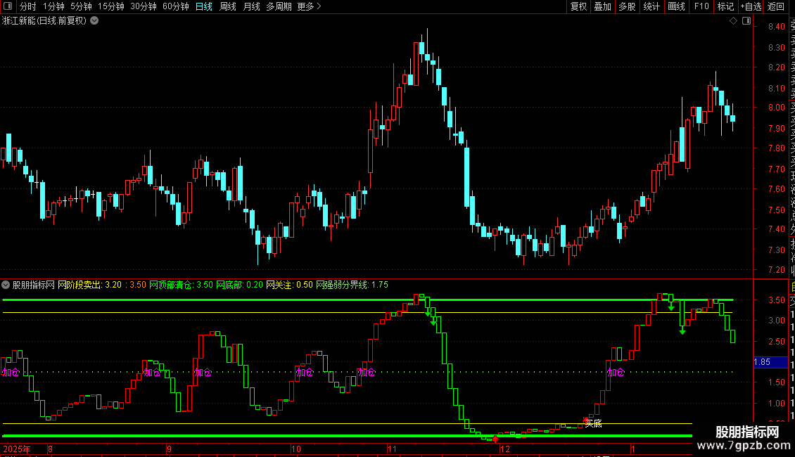 DRAWTEXT(CROSS(网动力线,网强弱分界线),网强弱分界线,'加仓'),COLORFF00FF;