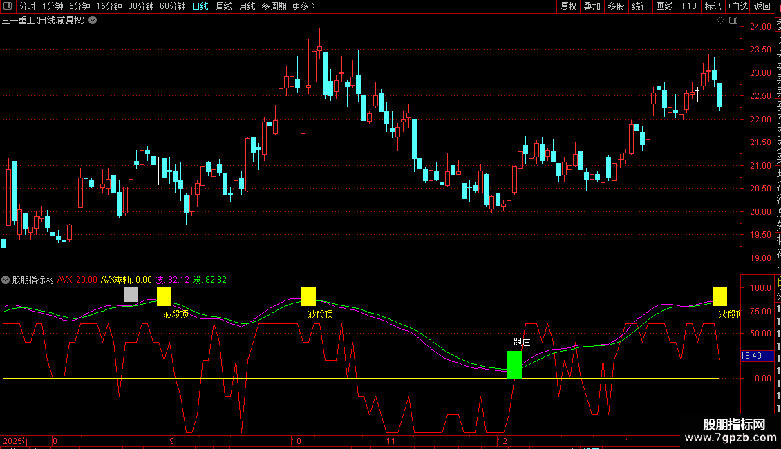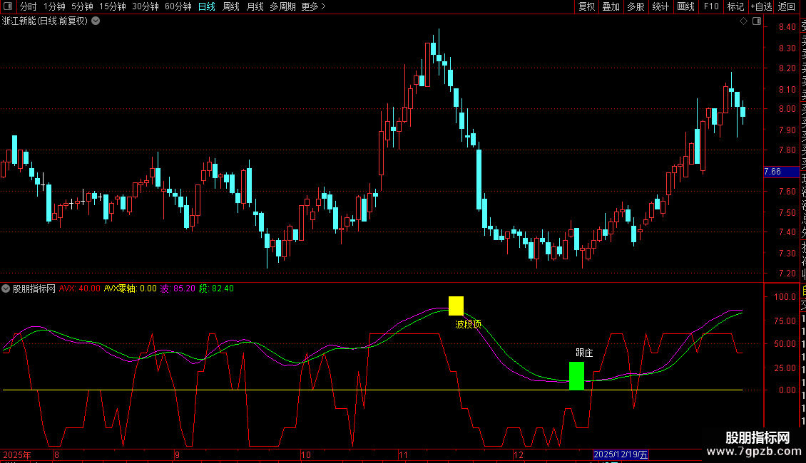 用法:在跟庄图标出现时建仓,在未出现波段顶时来回短炒。在红线下探-(-50) 横盘时补仓,红线上了(+50)后转头向下破线下后应及时减短线仓(如是T高手,一破就走人,逢低再买回,我不是玩T合格高手,我一般破+40后,我就闪),来回玩下短炒。波段线绿线与粉红线过了100时,小心行事了,慢慢减仓。玩短炒一般吃点鱼身是可行的。