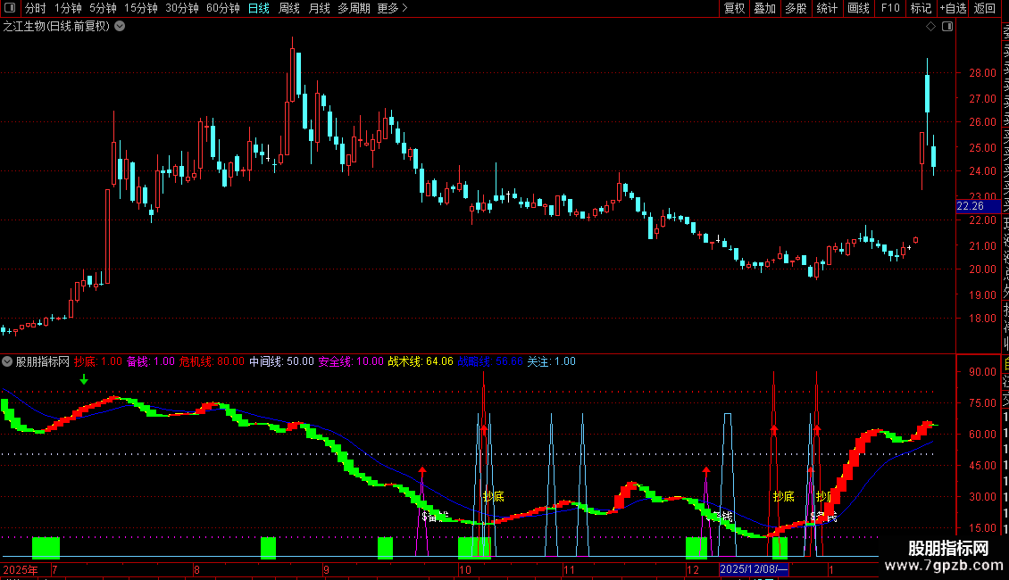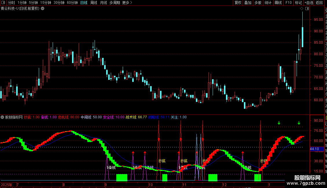 抄底:IF(VAR5,90,1),COLORRED;