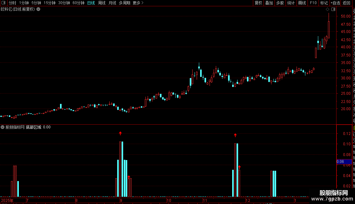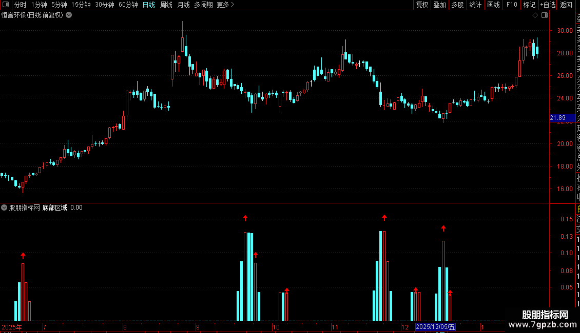 入货点:=IF(REF(底部区域,1)>0 AND REF(C,1)<=REF(O,1) AND 底部区域>0 AND C>O,1,0);
