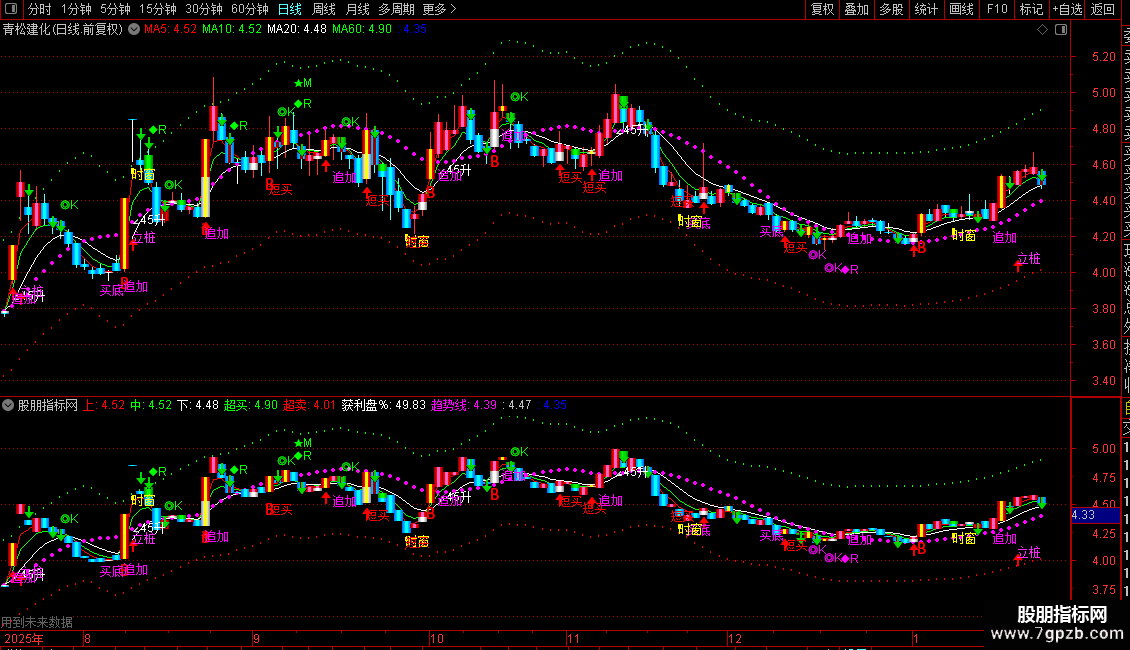 中:EMA(C,5),COLOR00FF00,LINETHICK1;