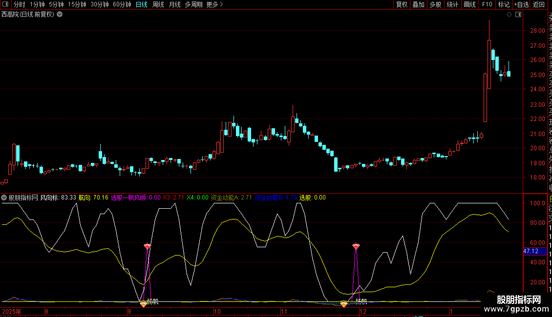 DRAWICON((CROSS(资金动能A,资金动能B) AND 资金动能B<-0.25),选股,26);