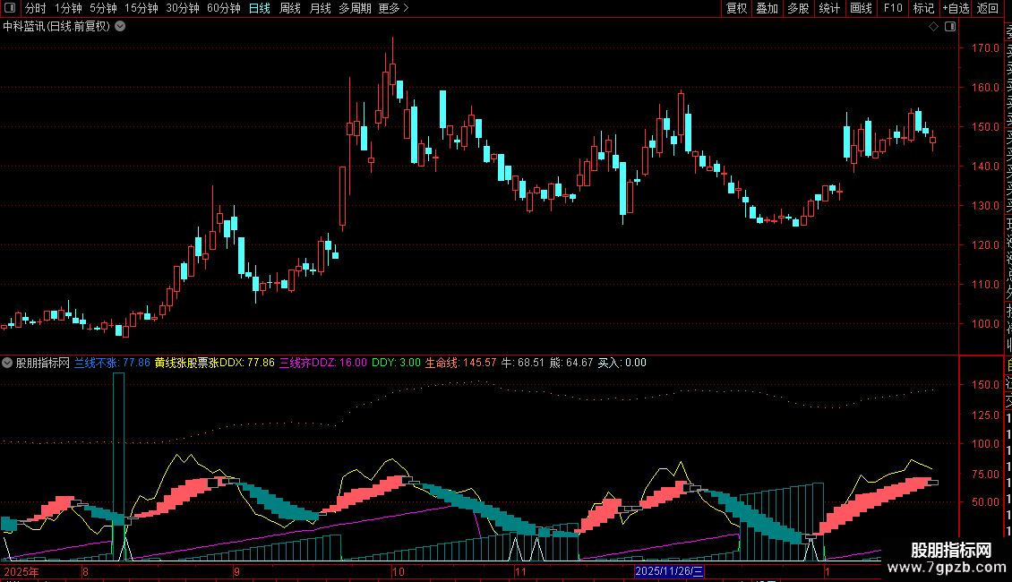 黄线涨股票涨DDX:MAX(兰线不涨,20),LINETHICK1,COLOR00FFFF;