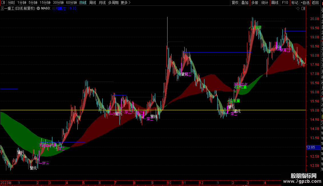 DRAWTEXT(一穿三,L-0.012,'一穿三'),COLORFF00FF;