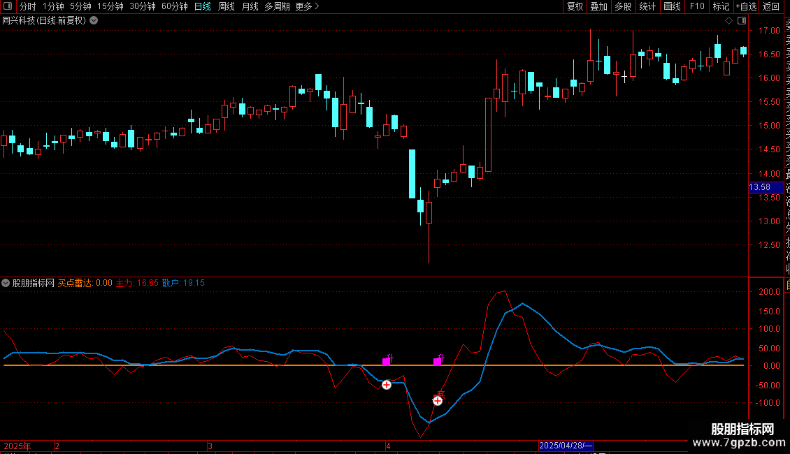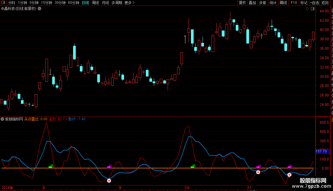 2、图中蓝线代表散户监控线,红线主力表示监控线;