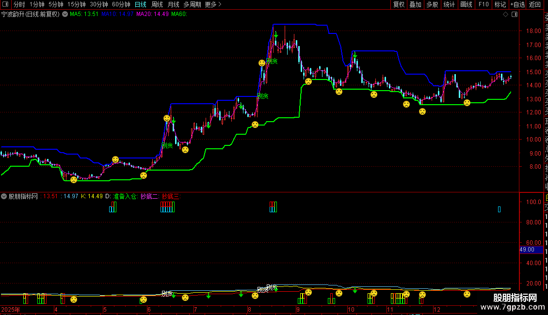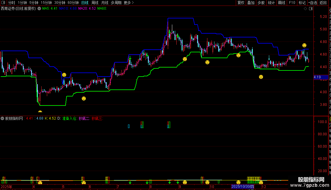 抄底四:IF(乖离<-4.5,0,0),COLOR00FFFF,LINETHICK1;