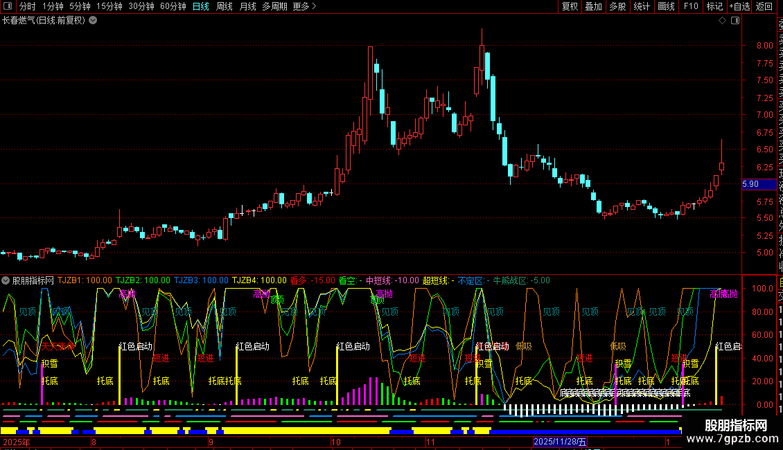 开始控盘:=IF(A10,5,0),LINETHICK1,COLORYELLOW;