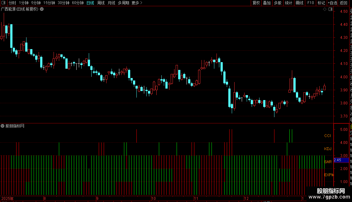 1)KDJ>100 翻绿(表示超买了可以高抛了) KDJ<0 翻红 (表示超卖了可以抄底了) 在(0-100)之间默认颜色,表示正常
