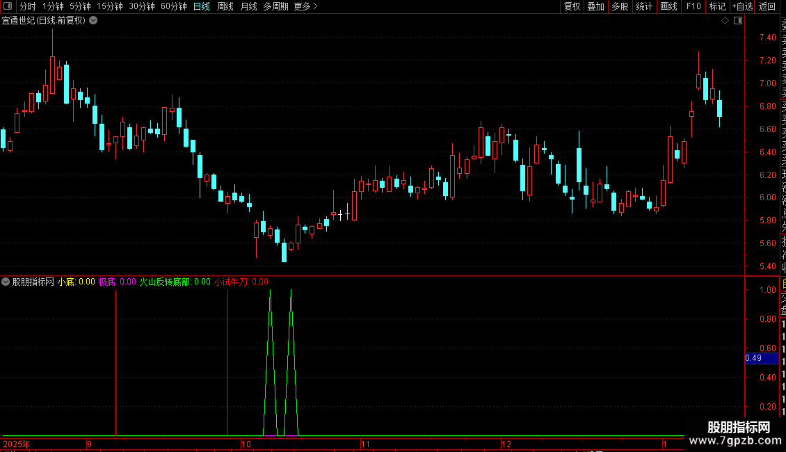 火山反转底部:(CROSS(RSI,11))*(1),COLORGREEN;