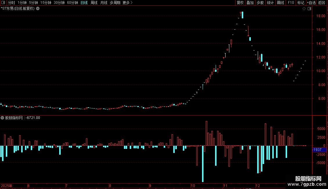 送一个在k线上看资金的分时指标,日线只能做为盘后分析用,这是一块毛料,你可以再加工