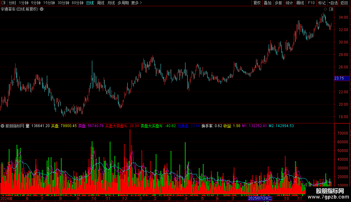 输出换手率:成交量(手)/当前流通股本(手)*100,线宽为0