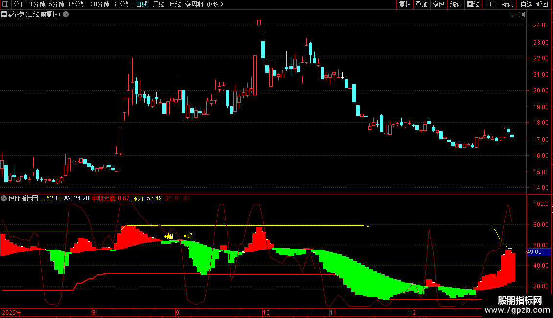 DRAWTEXT(CROSS(A2,J) AND A2>N4,A2+4.22,'●峰'),COLOR00FFFF;
