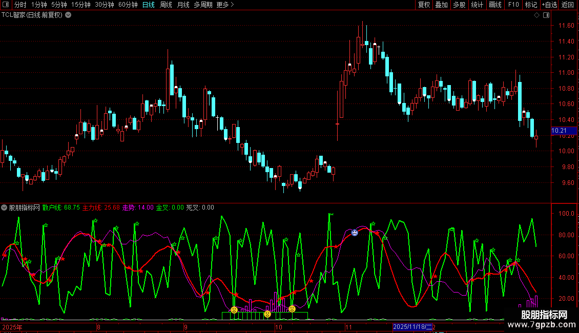 DRAWTEXT(死叉,散户线,'☆'),COLOR00F300;