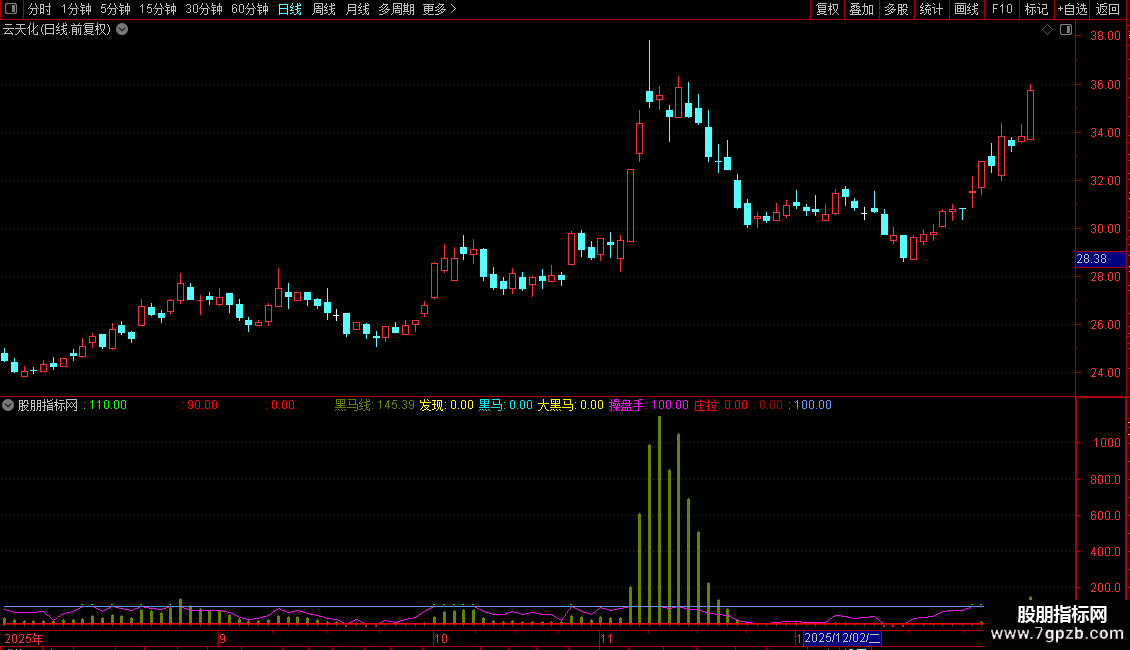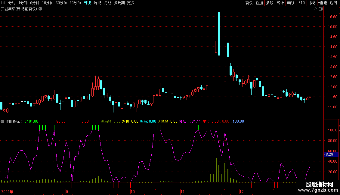 {DRAWTEXT(发现>0,25,'短线黑马2.5%')COLORCC99FF;