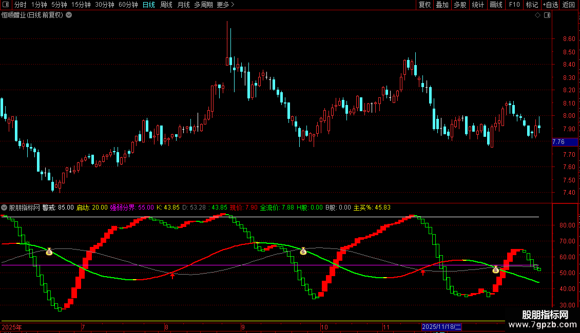 短线可参考中线指标来做,红色持股、绿色卖出。