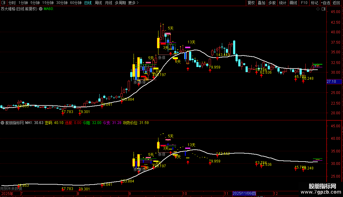 DRAWTEXT(VARZT=2,L*0.95,'3天'),COLORYELLOW;