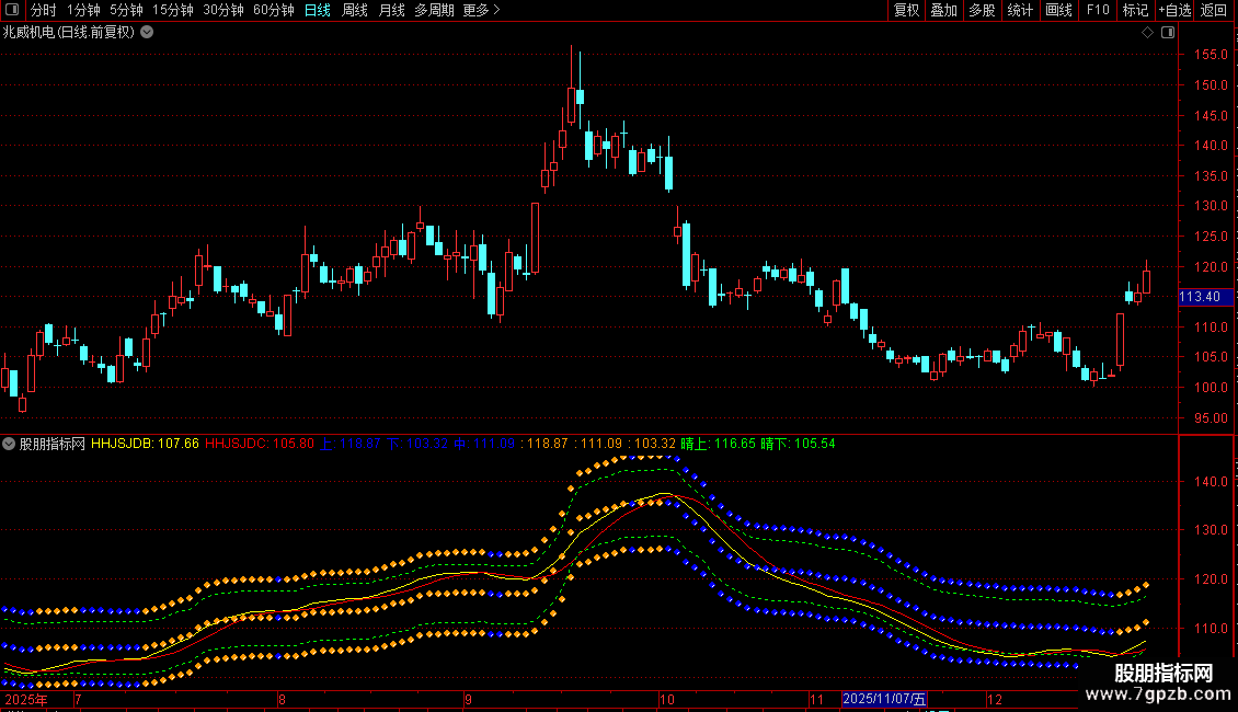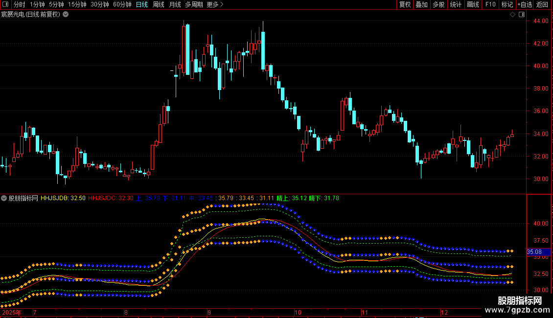 IF(下>=REF(下,1), 下,DRAWNULL),CIRCLEDOT,COLOR0099FF;