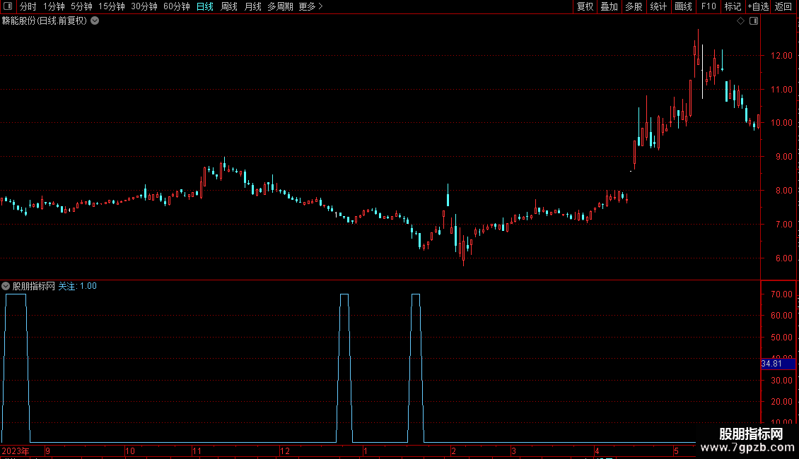 关注:IF(VAR10 AND CLOSE=LLV(CLOSE,20) AND VAR3<N,70,1),COLORFFCC66;