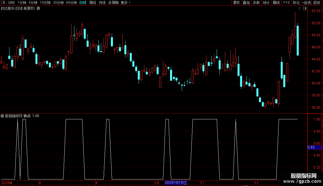 转点:IF(K>D AND CCI>0 AND DIFF>DEA AND MACD>0,1,0);